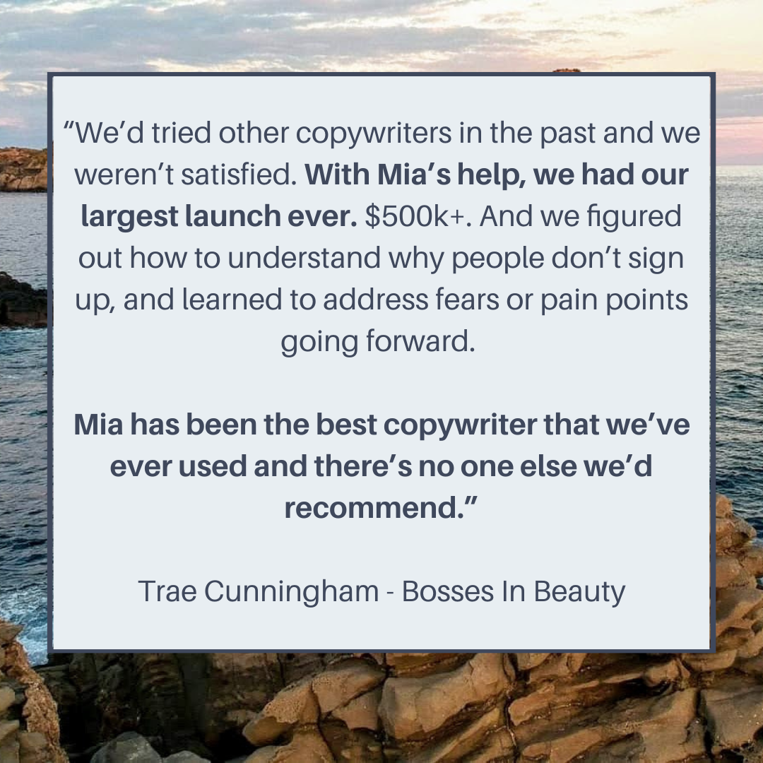 I’m teaching my ad copy methods that have gotten my clients multiple 5 figure, 6, and multi-6 figure launches.